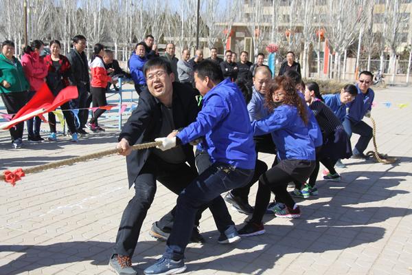 “听号子声声振耳,为争先同心协力,看长绳上下翻飞,穿花身影巧如燕……”。38日下午,雅盐化集团公司庆“三八”系列文体竞赛活动在职工文化广场举行。集团公司在家领导、各子公司、各单位领导以及部分男职工和全体女工欢聚一堂,共庆佳节。集团公司工会主席、女工委主任张菊萍主持了本次活动。活动内容包括:男女混合拔河比赛、4×50米负重接力赛、集体跳绳和集体踢毽子比赛。整个比赛过程中充满了欢声笑语,大家争先恐后你争我赶欢笑连连,展现了良好的精神面貌。公司高、中层领导也积极参与其中,极大地鼓舞了士气,凝聚了人心。经过近两个小时紧张激烈的角逐,精盐分厂代表队拔得拔河比赛头筹;生产技术部(实业)联队获得接力赛冠军;企管、销售、综合办,财务联队获得跳绳比赛规定与自选动作的双料冠军;集体踢毽子比赛冠军由采盐分厂代表队摘得
