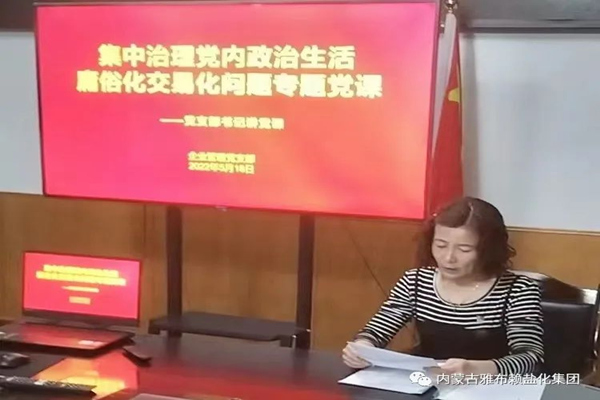 为切实提升党员干部严肃党内政治生活的政治自觉、思想自觉和行动自觉,有效有序推进集中治理党内政治生活庸俗化交易化问题向纵深发展,近日,雅盐化集团公司8个党支部相继开展“严肃党内政治生活 净化党内政治生态”主题党日活动。